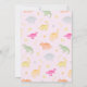 Picture the top of the invitation adorned with a whimsical jungle pattern of colourful dinosaurs (pink, green, yellow, orange) on a light pink background! 🌈🦕 This lively design sets the stage for a delightful 2nd birthday dinosaur theme celebration, creating an atmosphere filled with excitement and charm.
