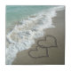 Two Sand Hearts on the Beach, Romantic Ocean Tile