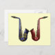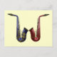 Two saxophones together symbolising the love of the instrument between two people. One blue saxophone, one red saxophone both with gold keys and touching as they face towards each other. Fully customisable and easy to personalise. Change the background colour and change the text to your own message. The ideal gift for a saxophone player or fan or, if you are in the music industry, a marketing gift for your musicians or clients.