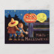 Two scared kids on Halloween night Postcard