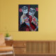 Two Senoritas was created to honour the Mexican Holiday "Dia De Los Muertos" or "Day Of The Dead". These two ladies are a symbol of love between mother and daughter or two friends. the older figure is on the left and the owl tattoo on her arm which is a colourful full sleeve signifies wisdom. The sugar skull on her back is one of the traditions of this colourful holiday. The figure to the right is a younger woman who is inked with a flying Cardinal and a Skeleton Cat surrounded by a sun and a moon with a smoking sugar skull on the bottom of her sleeve. These posters can be framed and matted please check out all paper options before adding the Two Senoritas to your cart. :0)