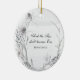 Inspirational quote scripture customised wedding Christmas ornament depicts simple watercolor flowers and foliage in muted shades of grey. It features Bible Verse Ephesians 5:31, "And the two shall become one." Personalise the back with names and date or the details of your choice.