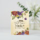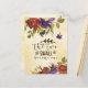 Fall wedding congratulations postcard with inspirational quote scripture depicts a beautiful rustic autumn floral watercolor with purple, burnt orange and yellow flowers and greenery. It features Bible Verse Genesis 2:24, "And the two shall become one."