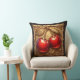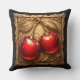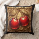 Two Shiny Red Cherries with Golden Leaves Cushion