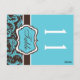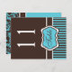 Two Sided Aqua and Brown Damask Table Number Postcard