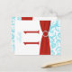 This two-sided aqua blue and white floral damask table number post card has a red PRINTED ribbon and a PRINTED jewel buckle on it that matches the wedding invitation shown below. **You MUST change the number 11's to each of the table numbers you need, add it to your cart, and then return and repeat the process until you have all the individually numbered cards that you need in your cart. ALSO, if you change fonts, or the size of the font, some of the design and/or text may get cut-off. Everything will print as you see it on your monitor. I will not see changes you make, and Zazzle will NOT correct anything (typos, mis-alignment etc.). The text is all customisable. If you need help with this product, please email me BEFORE you place your order. If you require any other matching items, please email your request to niteowlstudio@gmail.com