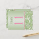 This double-sided sage green and pink floral damask table number postcard matches the wedding invitation and other items shown below. **You must change the number 11 to each of the table numbers you need, add it to your cart, and then return and repeat the process until you have all the individually numbered cards that you need in your cart. Stand it on a small easel, or in your centerpieces. If you need assistance, email niteowlstudio@gmail.com.