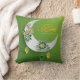 Two-sided Ramadan pillow. One side has paper cut design with Ramadan lanterns, flowers, and a crescent moon in yellows and greens. The other side close up with flowers and lanterns.