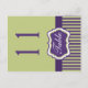 This double-sided purple, white, and green stripes and damask table number postcard matches the wedding invitation shown below. You must change the number 11's to each number that you need, add it to your cart, and then come back and repeat the process with each number that you need. Quantity discounts may apply once you add all the items to your cart. If you have any questions, contact me at niteowlstudio@gmail.com.