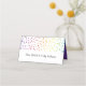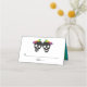 Two skull brides and colourful confetti lesbian wedding place card that features two skull brides on the front while on the backside there is a band made of confetti in rainbow colours.