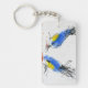 Two small titmouses pecking grain. Calligraphy Key Ring