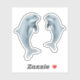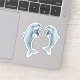 Dolphin sticker sheets with grey, bottlenose dolphins. Both dolphins are standing upright with tails in the water. Sheets come in a variety of sizes and can be used in scrapbooks, or as kid’s party favours. Celebrate summer or any child’s birthday with this fun design.