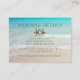 Beach wedding details cards come in bulk (100 cards per package). Tropical turquoise ocean water and beach sand image is the backdrop for wedding website information and link. Two brown starfish / sea stars represent the couple. Reverse is wet sand at the water's edge. Changing the size may disrupt this design. What you see in the preview is how it will print!
