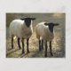 A pair of young Suffolk sheep, two black-faced sheep in a pasture or barnyard, with afternoon sunlight creating a pastoral scene. Suffolks originated in England and are the most popular sheep breed in the United States, comprising about 60% of the domestic sheep population. This postcard is perfect for anyone who keeps or admires sheep and lambs, especially Suffolks, including commercial farmers, hobby farmers and shepherds, anyone who shows or breeds sheep. Sheep and lambs are generally gentle in nature. The Suffolk breed is quite hardy either purebred or crossbred. As animal spirit guides or totems, sheep represent kindness and compassion, honesty and trust, artistic talents, community, emotional depth and domestic harmony. The Sheep is the eighth sign of the Chinese zodiac and the year of the Sheep (or Goat) falls every twelve years including 1955, 1967, 1979, 1991, 2003, 2015 and 2027. Photo: Jacquie Wingate.