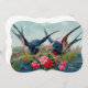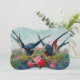 This gorgeous card features two swallows with ribbons and flowers. Historically swallows are associated with good luck and happiness. The beautiful birds are surrounded with a colourful landscape as they gracefully dance through the air with pink ribbons.