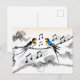 Two Swallows Singing on a Power Line in Chinese Postcard