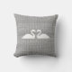 Two swans and wavy pattern in silver grey and white background Throw Pillow.