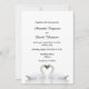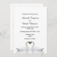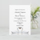 A simple and elegant wedding invitation with love as the theme. Two beautiful swans bending their heads toghether and forming a heart shape. White background. Templates for names and wedding details. Black letters.