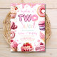 Celebrate your little one's sweet milestone with this adorable "TWO Sweet" birthday invitation! Perfect for a girl’s 2nd birthday party, this editable invitation features a fun pink dessert theme with doughnuts, cupcakes, ice cream, macarons, and sprinkles — all in dreamy pastel colours.