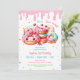 She is two sweet! Invite your guests to your little girl's 2nd Birthday party with this adorable fun doughnut-themed pink invitation featuring cute colourful doughnuts and sprinkles in rainbow colours, with pink frosting dripping. Easily personalise the text and have a blast. - Kate Eden Art