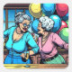 Two Sweet Elderly Ladies at a Bar Dancing Birthday Square Sticker