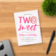 Invite guests to your little one's 2nd birthday party with these sweet doughnut-themed birthday invitations! The cute second birthday party invites feature the phrase "Two Sweet" in bright pink lettering, with the "o" replaced by a pink watercolor doughnut adorned with multi-coloured sprinkles. The design is set against a frosted or transparent acrylic background. Personalise the two sweet doughnut birthday invites with your child's name and party details, making them the perfect treat for your child's special celebration!