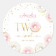 Pink white gold doughnuts two sweet 2nd birthday party sticker. Cute trendy design with watercolor pink and white doughnuts. Features typography script font. Perfect for a stylish feminine first girls bday celebration.