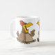 A couple of cartoon style chickens talking to each other. This design looks really effective on these Mug