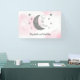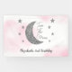 Two the moon! 2nd birthday with silver moon and stars with pink watercolor background