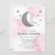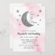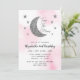 Two the moon! 2nd birthday with silver moon and stars with pink watercolor background