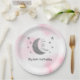Two the moon! 2nd birthday with silver moon and stars with pink watercolor background