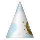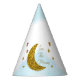 Two the moon! 2nd birthday with gold moon and stars with blue watercolor background