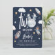 Two the Moon Cute Space Animals 2nd Birthday Invitation