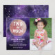Two the Moon Purple Pink Girl 2nd Birthday Photo Invitation