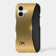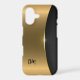 This beautiful two tone phone case pairs brassy, shiny gold with a subtle black pattern. Your monogram is in black script on the gold portion at the lower left side. Elegant for either a man or a woman.