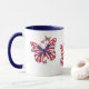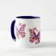 Red, White and Blue Butterflies surround this two-tone mug. Great for coffee and other hot beverages. Perfect for USA patriotic parties.