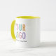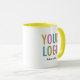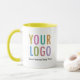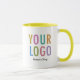 Easily personalise our ceramic two tone mug with your business logo, recipient name, or other custom text. You can reduce the cost of disposable cups and be green by giving employees their own reusable mug. Available in 11 ounce and 15 ounce with a yellow inside colour and handle. Also sold in other colours. No minimum order quantity and no setup fee.