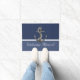 Welcome guests with this two toned blue, nautical style door mat, featuring two types of pinstripes and a realistic looking anchor. Text is customisable.