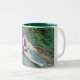 Coffee mug with ballerina in purple two toned mug in white/hunter green.