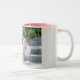 Coffee mug with ballerina in pink two toned mug in white/pink.