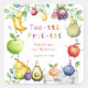 Add a burst of fruity fun to your party favours, envelopes, or treat bags with these adorable Two-tti Frutti square stickers! Featuring a cheerful lineup of smiling watercolor fruit characters—bananas, cherries, blueberries, avocados, apples, and more—this design brings a colourful and playful touch to your fruit-themed 2nd birthday party.