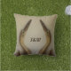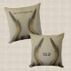 Two weathered wooden herons are facing each other on one side and facing away from each other on the reverse side of these coastal themed pillows. The design is based on an actual aged wood carving of a seabird. Personalise these sandy beige and tan neutral coloured pillows with Initials or Names. They have a rustic natural appeal ideal for a lakefront cabin, seaside cottage or beach home.