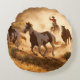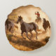 Two western cowboys riding horses, roping wild hor round cushion