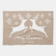 Two White Deer On Beige With Snowflakes & Text Tea Towel