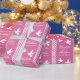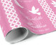 Simple two white peace doves with two pink ribbons wedding gift paper. Customise with your couples wedding names and wedding date. Uniquely designed by Sarah Trett.