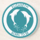 Two White Jumping Dolphins With Bubbles White cute white dolphins silhouettes preparing to jump from the water on turquoise sea background with curved text with your name, or your name and your loved one and custom text you can fully personalise. Perfect for Birthday Or Anniversary