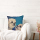 White dogs, pets on a blue background. Portrait. Pillows for sale