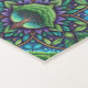 Two white panels display a vertical and horizontal arrangement of a vibrant blue and green peacock feather pattern, creating a symmetrical and elegant design.