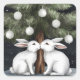 Two White Rabbits Kissing Under Christmas Tree Square Sticker