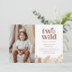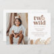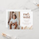 This birthday invitation features a sweet watercolor lion face with the phrase "two wild," accented by neutral toned jungle leaves along the bottom. You can add your own photo of the birthday boy or girl too. Perfect for a safari-themed second birthday celebration!
